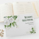 Ein schlichtes, elegantes Gästebuch mit weißen Rosen in Aquarelltönen und Blume aus dem Atem des Babys auf weißem Hintergrund.