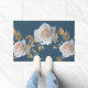 Weiße Rosen und goldene Blätter auf blauem Hinterg Fußmatte