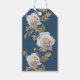 Weiße Rosen und goldene Blätter auf blauem Hinterg Geschenkanhänger