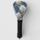 Weiße Rosen und goldene Blätter auf blauem Hinterg Golf Headcover