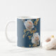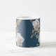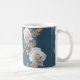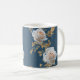 Weiße Rosen und goldene Blätter auf blauem Hinterg Kaffeetasse