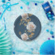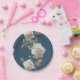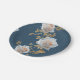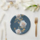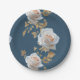 Weiße Rosen und goldene Blätter auf blauem Hinterg Pappteller