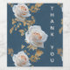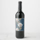 Weiße Rosen und goldene Blätter auf blauem Hinterg Weinetikett
