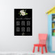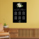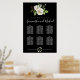 Weiße Rosenblüte auf schwarzen 6-Tisch-Sitze-Chart Poster