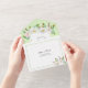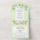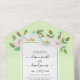 Weiße, rötlich-rosa Rose Blumengrün Hochzeit All In One Einladung