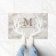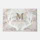 Erhalten Sie einen modernen rustikalen Blick mit dieser Fußmatte. Weißer Marmordruckhintergrund mit den weißen Dollargeweihen und Taupemonogrammbuchstabe plus vollen Familiennamen in der Mitte. Es ist ein anderes Nehmen auf rustikalem für die, die wie hellere Farbentwürfe.