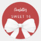 Ein roter Hintergrund. Mit einem großen weißen Bogen dekoriert. Personalisieren und einen Namen hinzufügen. Weiße handgeschriebene Schrift.