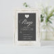 Diese schicke RSVP-Karte zeigt ein gedrucktes Bild eines weiß gekalkten rustikalen Holzrahmens mit einem Chalkboard-Look-Insert. Der typografische Stil der Schrift verleiht Eleganz und Romantik. Ideal für eine Vintage, rustikale oder landschaftliche Hochzeit.