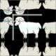 Dieses Tiergewebe-Ausrüstungsbeschreibungen ein wiederholendes abstraktes Muster der süßen gelockten behaarten weißen und hellgelben Schafe mit schwarzen Füßen und blauen Augen. Fertigen Sie leicht den schwarzen Hintergrund zur Farbe Ihrer Wahl zum Anzug Ihr spezielles Projekt besonders an.