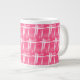 Jumbo Tasse mit einem Design aus weißen Linien auf rosa.