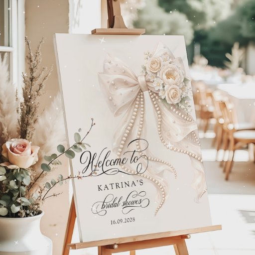White Pearl Bow Floral Bridal ShowerDesignt von Katsiaryna Lukyanava