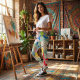 Weiße Schmetterlinge Farbige Tropfen und Pinselstr Leggings