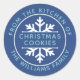 Aus der Küche des Aufklebers für Ihre gebackenen Weihnachtsartikel. Ein runder Aufkleber in Blau und Weiß für Weihnachtsgebäck. Blauer gebogener Text um eine weiße Schneeflocke. Füge Deinen Namen hinzu.