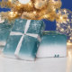 Weiße Schneeflocken auf blau Geschenkpapier