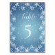 Winterveranstaltungen (Hochzeit, Weihnachtsfeier, Geburtstagsfeier, Brautparty) Tischnummernkarte. Dieses Design zeigt weiße Schneeflocken auf blauem Hintergrund. Sie können die Tischnummer nach Ihren Anforderungen ändern (2, 5...7...10...) - jedes Mal eine neue Karte, und fügen Sie alle diese Karten Ihrem Warenkorb hinzu.