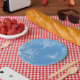 Weiße Schneeflocken auf dem blauen Weihnachtsfest Pappteller