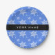 Weiße Schneeflocken, Blau, Ihr Name, Personalisier Pappteller