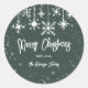 Weiße Schneeflocken elegante grüne Weihnachten Runder Aufkleber