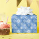 Elegantes weißes Schneeflockenmuster auf blauem Hintergrund.