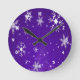 Weiße Schneeflocken mit blauem Lila Hintergrund Runde Wanduhr