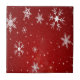 Weiße Schneeflocken mit rotem Hintergrund Fliese