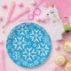 Weiße Schneeflocken Muster auf blauem Hintergrund Pappteller