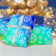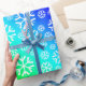 Weiße Schneeflocken Muster auf Regenbogenglanz Geschenkpapier