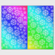 Weiße Schneeflocken-Muster auf einem diagonalen Regenbogenfarbenen Hintergrund.