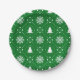 Weiße Schneeflocken Weihnachtsbaumen Grünes Design Pappteller