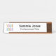 Dieses veränderbare Schreibtischschild kann einfach mit Ihrem Firmenlogo, Ihrem Firmennamen, Ihrem Jobtitel oder einem anderen benutzerdefinierten Text personalisiert werden. Sie können die weiße Hintergrundfarbe anpassen. Erhältlich in anderen Metallfarben in zwei Größen - Standard 2 Zoll x 8 Zoll oder lang 2 Zoll x 10 Zoll - und in zwei Formaten - als Schreibtischschild oder Türenschild. Keine Mindestbestellmenge und keine Einrichtungsgebühr.