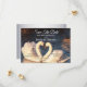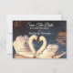 Elegante weiße Schwäne beim Hochzeitsdatum speichern die Datumskarte