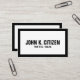 Mutige GrenzVisitenkarte. Einfacher, dennoch starker und impactful Entwurf. Große schlichte schwarze Grenze und großer mutiger Text auf hochauflösendem weißem Hintergrund.