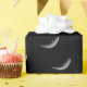 weiße schwimmende Feder auf schwarz Geschenkpapier