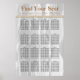 Das ist ein elegantes Poster mit weißem Seidenmuster und hellorangefarbenen Perlen. Der Text "Bitte finden Sie Ihren Sitzplatz" ist eine handgeschriebene Schrift mit den Farben Weiß und Gold. Es gibt genug Platz für mehr als 100 Gäste. Sie können die Tabellen löschen, die Sie nicht benötigen, und den Schriftart jeder Tabelle verändern, um ihren Platz auf dem Poster anzupassen. Oder bewegen Sie sich einfach um den Tabellenblock.