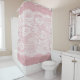 Weiße Spitze auf Pastellrosa Linen Textur Duschvorhang
