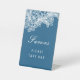 Weiße Spitzen auf blauen Favoriten Sockelschild