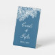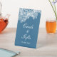 Weiße Spitzen auf blauen Karten und Geschenken Sockelschild