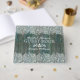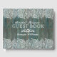 Eleganter Vintager Blumenrahmen über moosgrüne Holzplanken. Maßgeschneiderte Gästebuchvorlage für Hochzeiten.