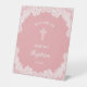 Weiße Spitzen auf rosa Taufe Willkommen Sockelschild