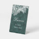 Weiße Spitzen auf smaragdgrünen Imitaten Velvet Fa Sockelschild