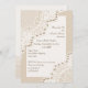 Elegante weiße Spitzen mit Perlen Hochzeitspaare duschen Einladung mit weißer Spitze auf beige Sand, die zwei Ecken eines weißen Rechtecks mit beige Rand bedeckt. Text in braun. Beachten Sie, dass die Spitze "bedruckt" ist und nicht echtes Gewebe. Dieses elegante, elegante und romantische Shabby Chic-Design ist Teil eines Hochzeitsgeschehens und eignet sich hervorragend für eine elegante Frühjahrs-, Sommer- oder Herbst-Hochzeit mit einer neutralen Farbpalette.