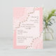 Elegante weiße Spitze mit Perlen pink Paare Polterabend Einladung mit weißer Spitze mit beige/ecru Perlen auf weich rosa, die zwei Ecken eines weißen Rechtecks mit rosa Rand bedeckt. Text in braun. Beachten Sie, dass die Spitze "bedruckt" ist und nicht echtes Gewebe. Dieses elegante, elegante und romantische Shabby Chic-Design ist Teil eines Hochzeitsgeschehens und eignet sich hervorragend für eine stilvolle Frühjahrs-, Sommer- oder Herbst-Hochzeit.