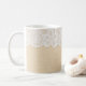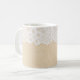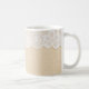 Weiße Spitzen über Stoffdesign. Kaffeetasse