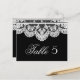 Weiße Spitzen- und Schwarz-Hochzeit-Tischnummer Postkarte