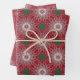 Weiße Spitzenschneeflocken auf dunkelroten Mosaike Geschenkpapier Set