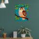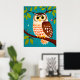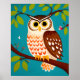 Weiße Stilmalerei einer Eule auf einem Baum Poster