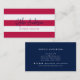 White Stripes und Custom Color Modern Script Visitenkarte, die bearbeitbare Hintergrundfarbe auf der Vorderseite (klicken Sie auf anpassen und ändern Sie die Hintergrundfarbe von Rosa in eine andere Farbe) und auf der Rückseite. Es ist einfach, den Platzhalter-Text durch eigene Informationen zu ersetzen. Für weitere Optionen, wie zum Beispiel den Schriftart zu ändern und ihn zu vergrößern oder zu verändern, klicken Sie auf den Button "Anpassen". *Bitte beachten Sie, dass das Zazzle-Wasserzeichen, das in der Zoomvorschau angezeigt wird, NICHT auf dem gedruckten Endprodukt erscheint. © Rosewood and Citrus