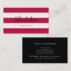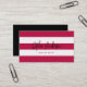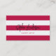 White Stripes und Custom Color Modern Script Visitenkarte, die bearbeitbare Hintergrundfarbe auf der Vorderseite (klicken Sie auf anpassen und ändern Sie die Hintergrundfarbe von Rosa in eine andere Farbe) und auf der Rückseite. Es ist einfach, den Platzhalter-Text durch eigene Informationen zu ersetzen. Für weitere Optionen, wie zum Beispiel den Schriftart zu ändern und ihn zu vergrößern oder zu verändern, klicken Sie auf den Button "Anpassen". *Bitte beachten Sie, dass das Zazzle-Wasserzeichen, das in der Zoomvorschau angezeigt wird, NICHT auf dem gedruckten Endprodukt erscheint. © Rosewood and Citrus