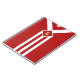 Stilvolle geometrische Muster mit fett weißen Streifen auf einem roten Hintergrund. Drei abwechselnd weiße und rote Chevronen enden an einem roten Diamanten, der mit Weiß umrissen ist. Es sieht aus wie eine stilisierte Medaille, die an einem Band hängt. Der Diamant enthält ein anpassbares Monogramm. Drei weiße Streifen erstrecken sich von der gegenüberliegenden Seite des Diamanten bis zum Rand des Designs. Die äußeren Drittel des Musters sind rot. Digitales Bild. Copyright © 2014 Claire E. Skinner. Alle Rechte vorbehalten.