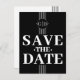 Weiße Streifen und Initialen Save the Date schwarz Postkarte